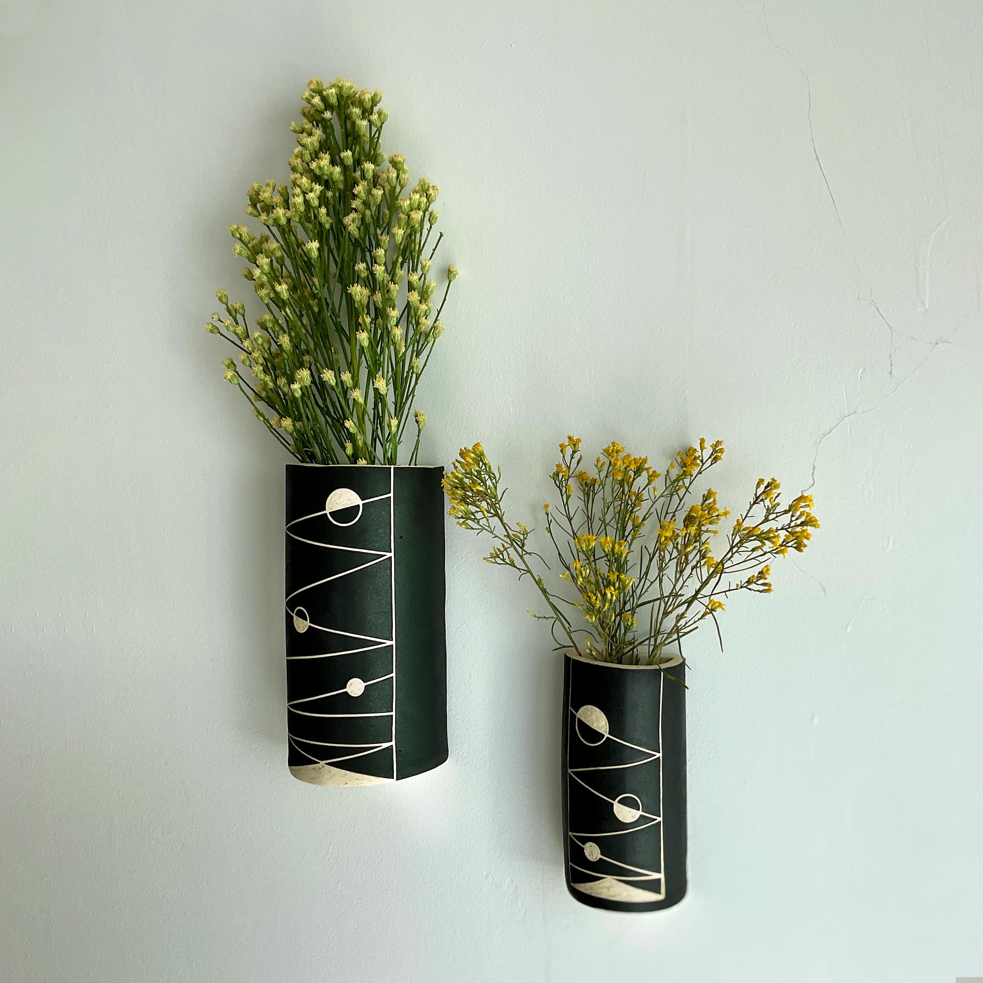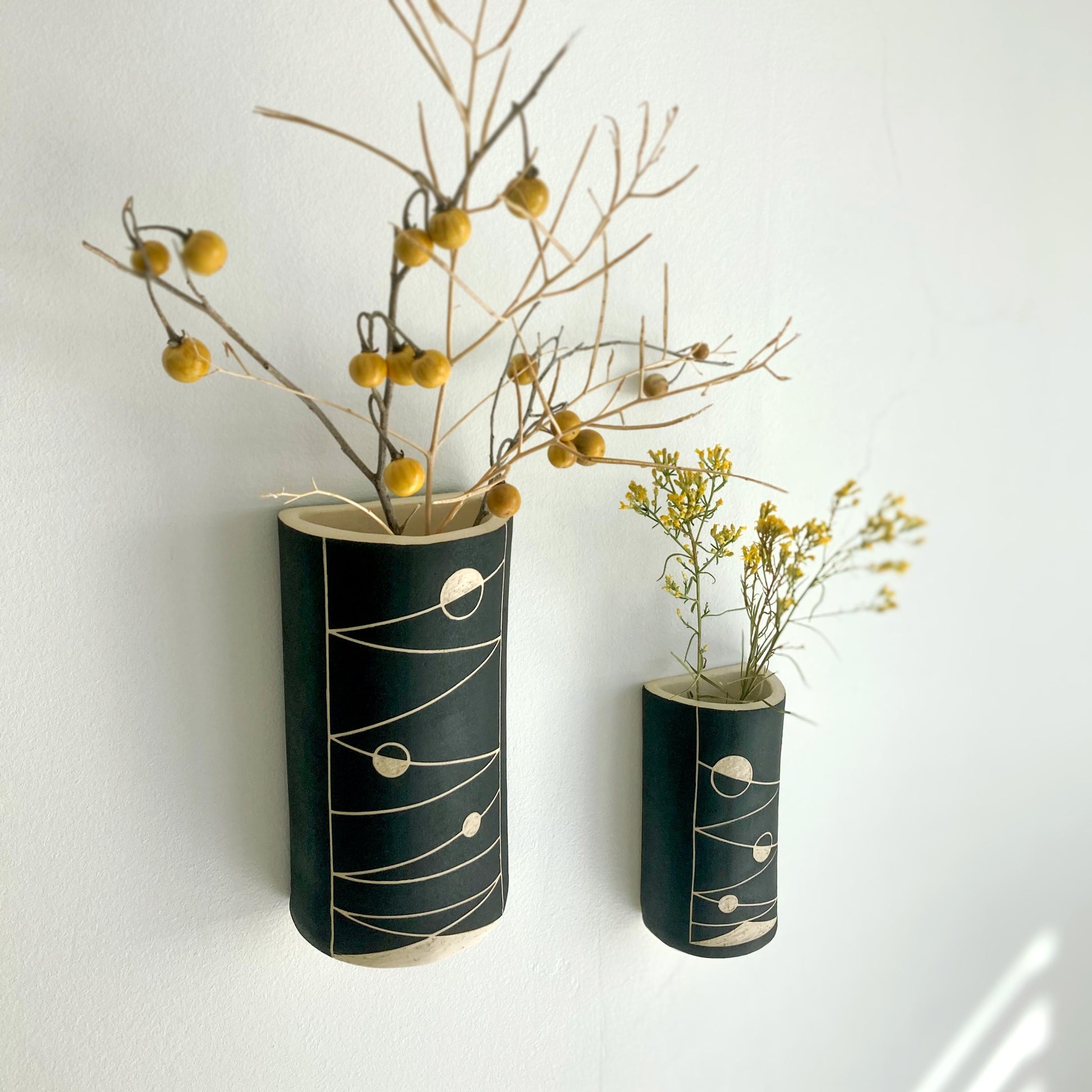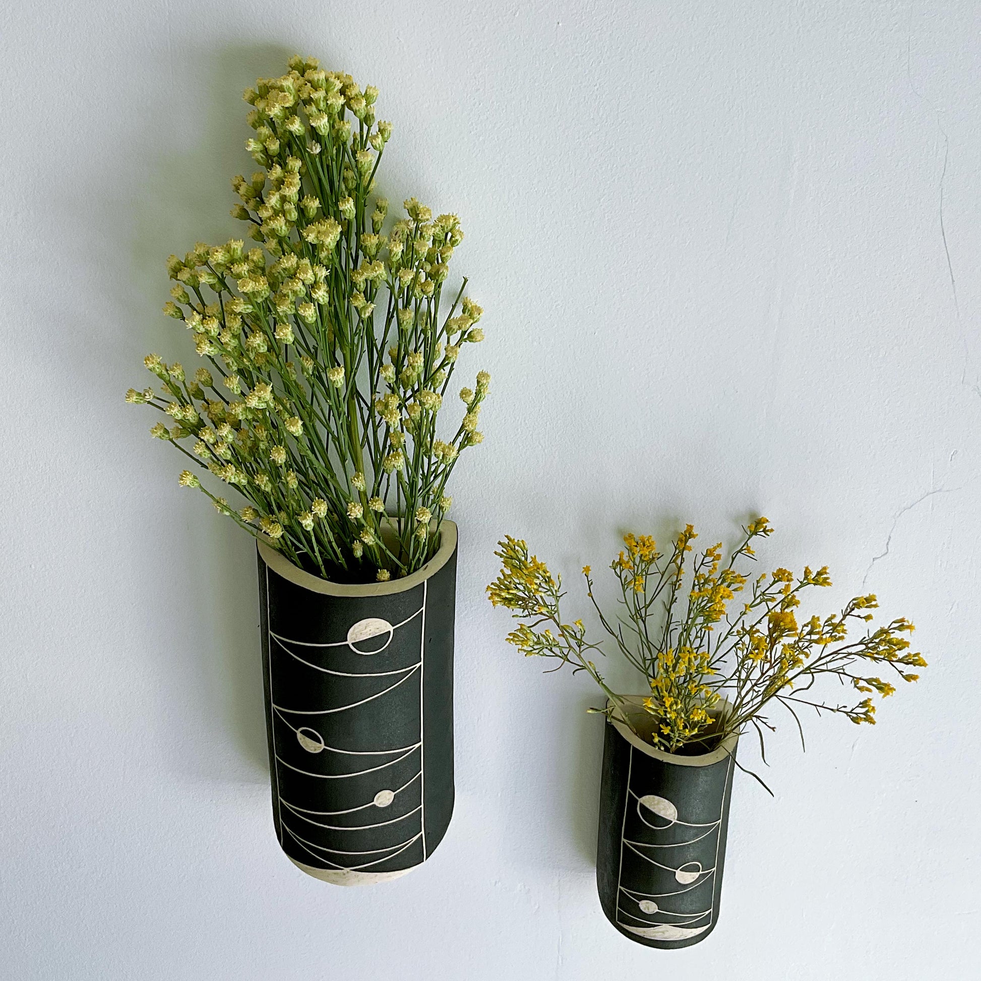 These handmade modern vases beautifully combine fine art with functionality, effortlessly enhancing any room with their stylish design. Crafted to be hung on the wall, they are perfect for holding both dry flowers or fresh ones. Whether displayed as a striking wall piece or used as a centerpiece on the table, these unique vases bring a modern, elegant touch to any space.